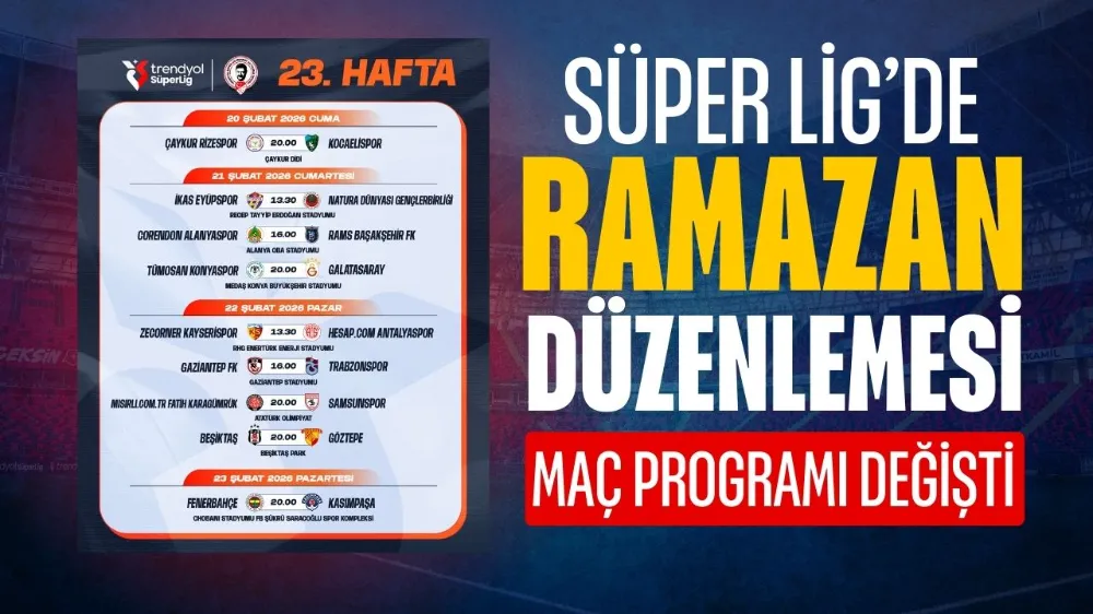 Türkiye Futbol Federasyonu, Trendyol Süper Lig’in 23. hafta müsabaka takvimini ilan etti. Bu haftanın planlamasında Ramazan ayı ve UEFA kulüp organizasyonlarında play-off mücadelesi verecek takımların yoğun trafiği ana belirleyici oldu.