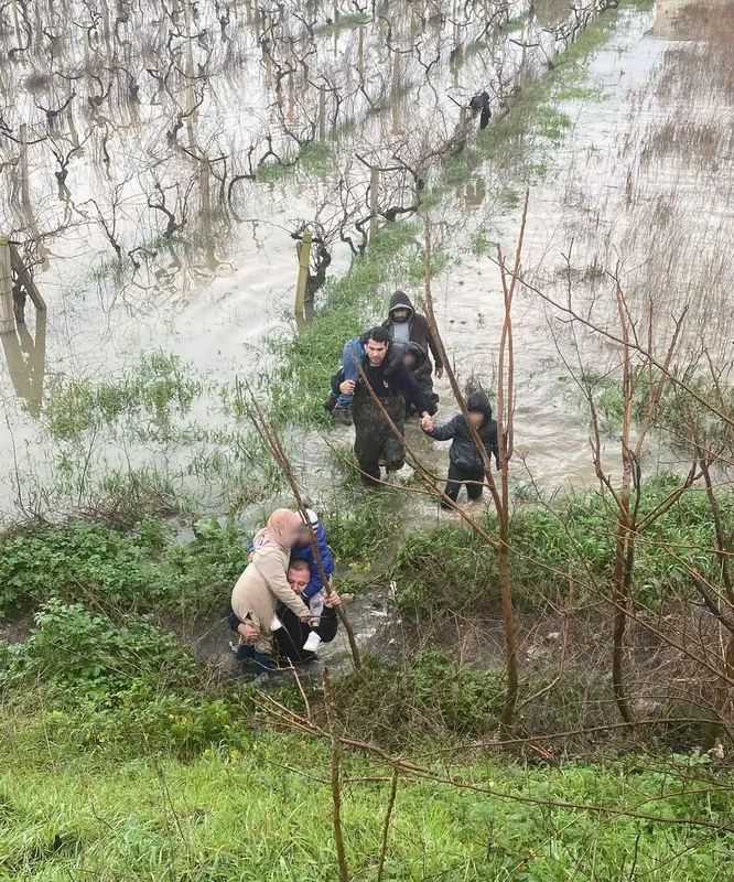 Taşkın sebebiyle mahsur kalan aile kurtarıldı