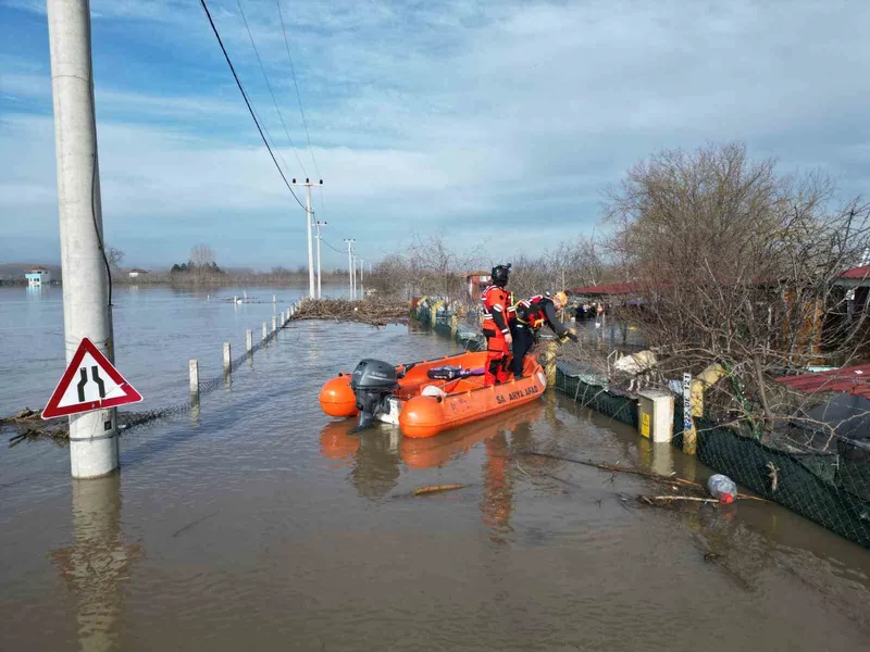 Debisinin yükselmesi sonucu Meriç Nehri sularının yatağından çıkarak taşkın sahasına yayılması sonrası, özellikle Bosna köyü civarında su altında kalan alanlarda mahsur kalan hayvanlar için arama kurtarma çalışmaları devam ediyor.