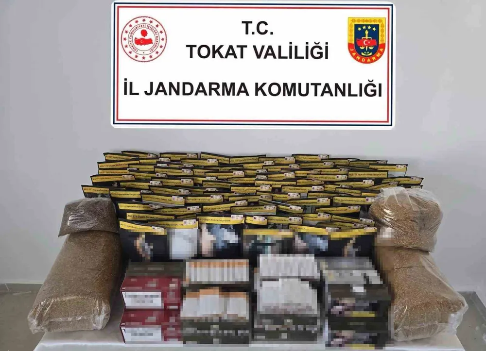 Tokat’ta jandarma ekiplerince düzenlenen operasyonda binlerce makaron ve kaçak tütün ele geçirildi.