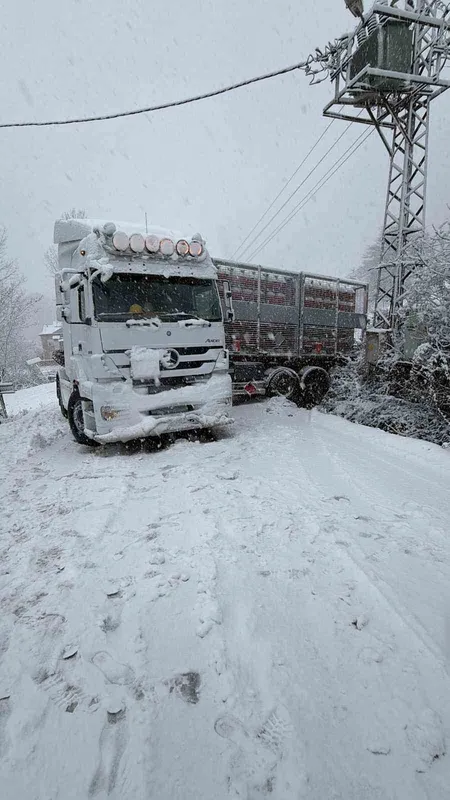 Sinop’un Türkeli ilçesinde etkili olan yoğun kar yağışı yaşamı olumsuz etkilemeye devam ediyor. Türkeli-Ayancık karayolunun Düz köyü mevkiinde doğalgaz tırının kar nedeniyle kayması sonucu yol ulaşıma kapandı.