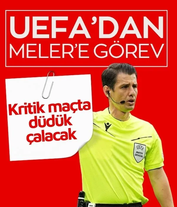 İtalya'nın Roma şehrindeki Olimpiyat Stadı'nda TSİ 22.00'de başlayacak olan mücadelede Meler'in yardımcılıklarını Abdullah Bora Özkara ve Bersan Duran üstlenecek.