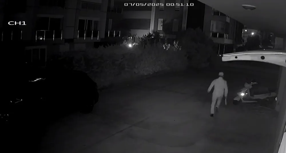 Soruşturma kapsamında ortaya çıkan güvenlik kamerası görüntülerinde, olay gecesi şüphelinin sitenin arka kapısı çevresine geldiği, bir süre etrafı kontrol ettiği ve ardından eldiven giydiği anlar yer alıyor. Devamında elindeki sopayla karanlık alana doğru ilerlediği görülürken, son görüntülerde ise aynı kişinin hızla koşarak motosikletin bulunduğu tarafa doğru olay yerinden uzaklaştığı anlar güvenlik kamerasına yansıyor.