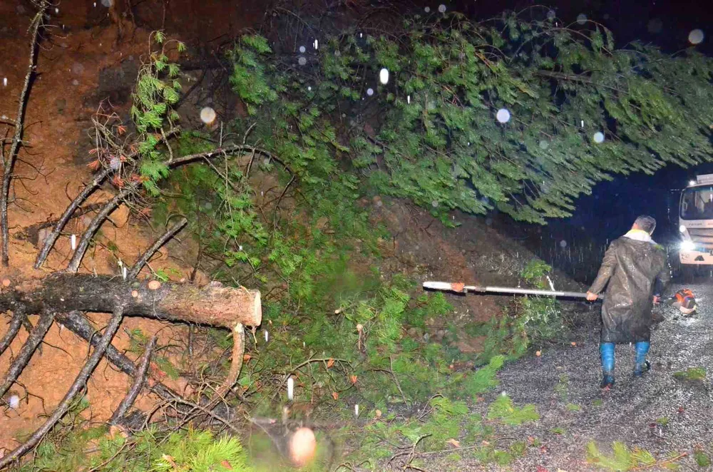 Yağış ağaçları devirdi, yol kısa sürede açıldı