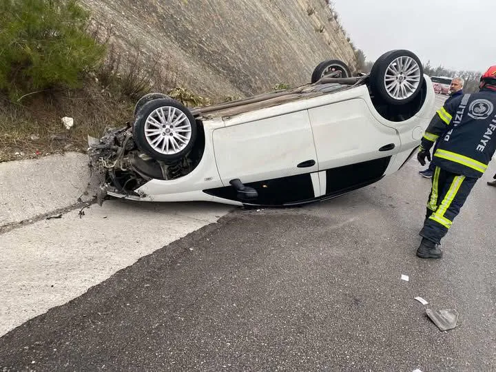 Yağış sonrası kayganlaşan yolda savrulan araç takla attı