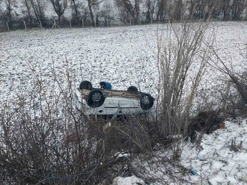 Yozgat’ın Saraykent ilçesinde sürücüsünün direksiyon hakimiyetini kaybetti otomobil takla attı.