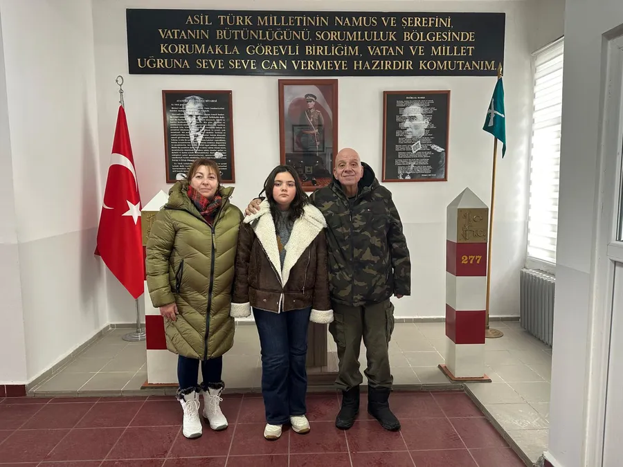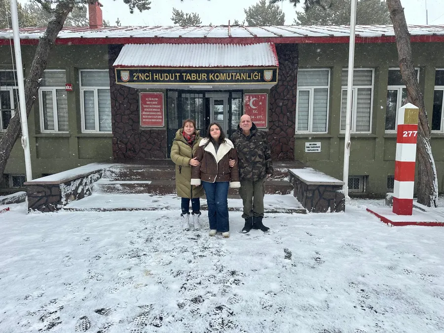 Eşimin anne tarafı Ardahanlı ama Ardahan’ a gitme nedenimiz bu değil. Elbette ki kızım babaannesinin köklerine de yolculuk yapacaktı ama asıl olan eşimin 40 yıl önce yaptığı hudut görevinin ne olduğunu kızımıza da anlatmaktı. Evet bir gün de olsa kızım Öykü de askerlik deneyimini hem de babasının askerlik yaptığı karakolda 12 yaşında yaşadı. Babası da seferberlik ruhunu 12 yaşında yaşamıştı. Kızım da babasının yolunda ilk sefer görev emrini 12 yaşında yaşadı. “Her Türk Asker Doğar” cümlesi de gerçekten erkek kız ayırmadan doğru bir cümleymiş bunu da görmüş olduk. -15 derecede kar tipi demeden bir günde tam 5 karakol gezip, bir de üstüne sınırda Mehmetçikle sınır nöbeti tuttu o minik yüreğiyle.
