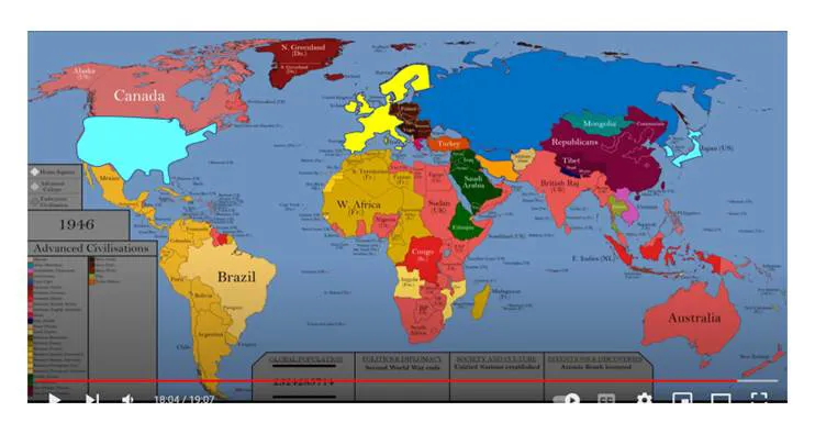 İkinci Dünya Savaşının ardından, 1946’ya gelindiğinde Çin toprak bütünlüğünü hala sağlayamamış görünmektedir. Rus İmparatorluğu’nun yerini alan Sovyetler Birliği de Avrupa içlerine doğru sarkmıştır. İran uzun bir zamandan sonra küçülmüştür. ABD II. Dünya Savaşı sonrasında hegemon devlet konumuna yükselmiştir.