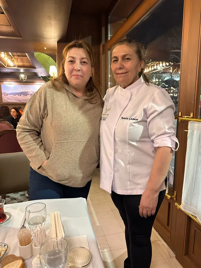 Tomris Hanım, daha kapıdan girerken gülen bir yüzle kollarını açıp hoşgeldiniz dedi mi tamam, artık onun aurasına bir kere girmiş oluyorsunuz. Resepsiyonda, Lobide, restaurantta, mahsende, mutfakta, artık heryerde onun bir uydusu olacaksınız. Çünkü Tomris Hanım eğer bir kaz pişecekse, onu getiren, yolan, haşlayan, pişiren ve  şimdiki deyimle Fine dining sunan tek kişi. Azıcık başınızı başka bir yere çevirecek olsanız,  kahve ikram edeyim , Umaç Helva yaptım size diye gene misafirperver ve anaç bir tavırla karşınıza çıkıverecek.