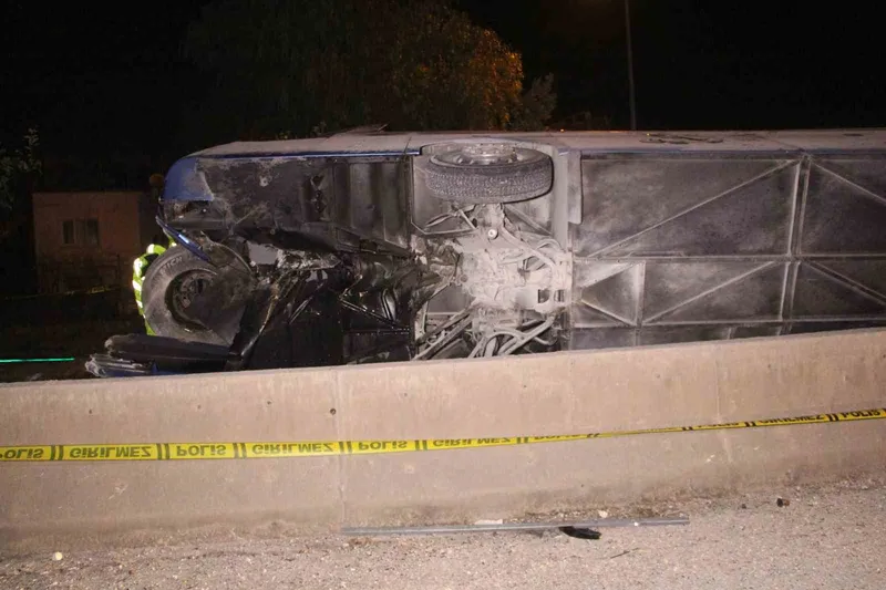 Adana’da otoyolda beton bariyere çarpan yolcu otobüsü devrildi. Meydana gelen kazada 8 kişi yaralandı.