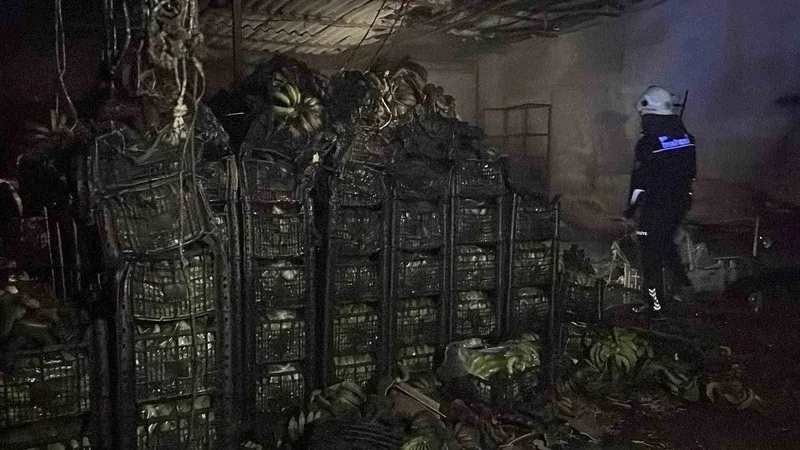 Antalya’nın Alanya ilçesinde bulunan Demirtaş Sebze ve Meyve Hali’nde muz sarartma tesisi deposunda çıkan yangın, itfaiye ekiplerinin müdahalesiyle kontrol altına alındı. Yangında kimse yaralanmazken tonlarca muz zarar gördü.