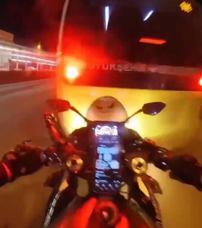 Bursa’nın Yıldırım ilçesinde bir motosiklet, trafikte duran belediye otobüsüne çarptı. Kaza anı motosikletlinin kask kamerasına saniye saniye yansırken, sürücünün çarpmadan hemen önce "Allah’ım sana geliyorum" sözleri dikkat çekti.