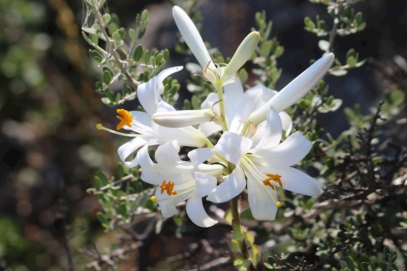 Aydın’ın Kuşadası ilçesindeki dağlarda, halk arasında Bardakcılı olarak bilinen ve koruma altına alınan Lilium Candidum türü akzambaklar çiçeklerini açmaya başladı.