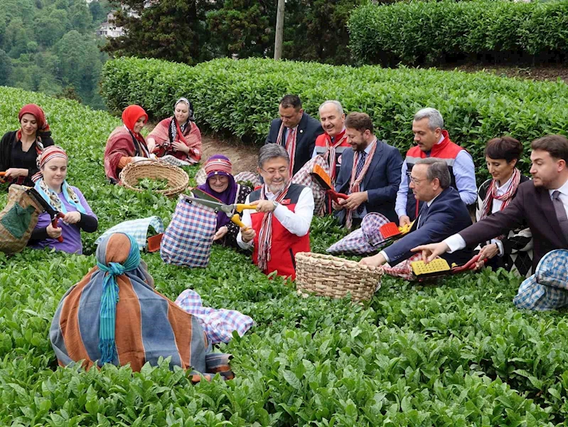 Çay hasadının ardından konuşan Bakan İbrahim Yumaklı, üretimin her aşamasında üreticilerin yanında olduklarına vurgu yaparak "Her bir ürün için tek tek çalışıyoruz. Yine dünyaya açılan kapılarımızdan bir tanesi çay ürünü. Dolayısıyla çay ile ilgili de bütün süreçlerinde hep birlikte, Rize’nin hem sivil toplum kuruluşlarından hem siyasetinden hem diğer unsurlarından bir araya gelerek bir sinerji oluşturarak süreci yönetiyoruz. Kuru çay üretiminde Türkiye olarak dünyada beşinci sıradayız, Avrupa’da birinci sıradayız. Ancak çay tüketiminde dünyada dördüncü sıradayız orada da üst sıraları zorlamaya devam ediyoruz. 2024 yılı itibarıyla çayın Türkiye ekonomisine olan katkısı yaklaşık kırk beş milyar lira, bu çok önemli bir rakam. Özellikle sadece bu yıl için bu ürünün ekonomide ağırlığını da dikkate alırsak hakikaten son derece önemli. 5 ilimiz ağırlıklı olarak üretiyor bunu Rize’de yüzde 64’ü yani 872 bin tonu, Trabzon’da yüzde 23’ü yani 306 bin tonu, Artvin’de yüzde 11’i 147 bin tonu, Giresun’da yüzde 2 yaklaşık 32 bin tonu, çok az da diğer illerimizde var. ÇAYKUR ve özel sektör sezonun açılışı itibariyle artık çay almaya başladı. Bütün hazırlıklarını tamamlamışlardı. Üretilen yaş çayı işleyen ÇAYKUR ve özel fabrikalarla birlikte 195 üretim tesisi var. Bunlardan 49’ u ÇAYKUR’un 2024 yılında ki çay rekoltesi yaklaşık 1 milyon 430 bin ton civarındaydı. Bu yıl bir milyon üç yüz bin ton civarında bir çay rekoltesi bekliyoruz" diye konuştu.