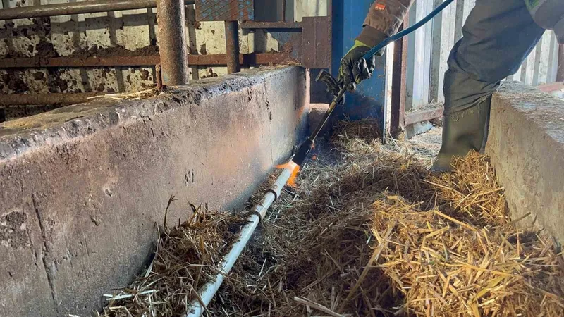 Eskişehir’de eksi seviyelerde seyreden hava sıcakları sebebi ile su şebekeleri donan besiciler hayvanlarını sulayabilmek için buzla kaptı boruları ısıtmaya çalışıyor.
