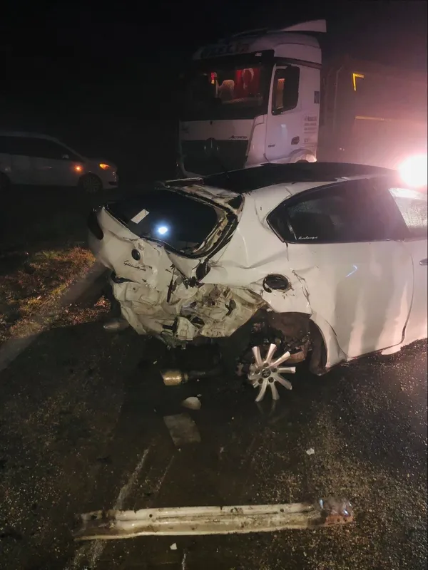 Bilecik’in Söğüt ilçesinde ıslak yol nedeniyle meydana gelen trafik kazasında otomobil ile tırın çarpışması sonucu 2 kişi yaralandı.
