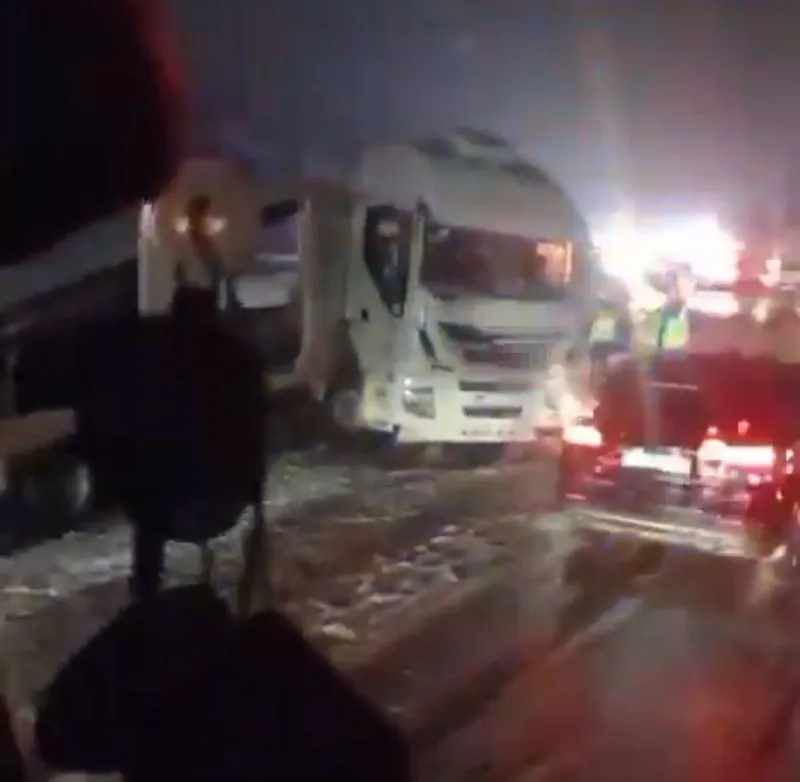 Bolu Dağı’nda etkili olan yoğun kar yağışı nedeniyle TEM Otoyolu Bolu Dağı Tüneli çıkışında 6 aracın karıştığı zincirleme trafik kazası meydana geldi. İstanbul istikametinde ulaşımın uzun süre tek şeritten sağlandığı kaza, cep telefonu kamerasına yansıdı.