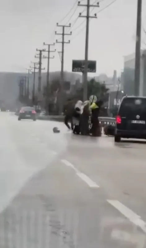 Bursa’nın Kestel ilçesinde seyir halindeki sürücü ile kurye arasında çıkan kavgada tekme ve yumruklar havada uçuştu. Araçtan inen sürücü, motokuryeyi darp ederken, kadınlar olayı ayırmak için var gücüyle çabaladı. Araçtan inen bir çocuk ise o anları şaşkınlıkla izledi.