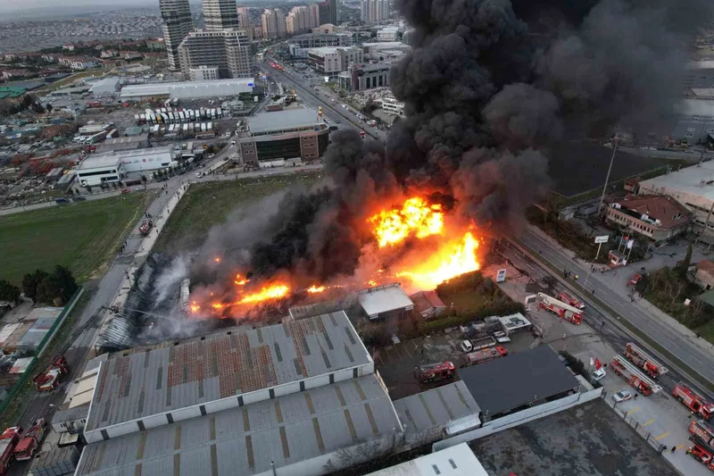 Büyükçekmece Çakmaklı Mahallesi’nde bulunan plastik kasa üretimi yapan fabrikada bilinmeyen bir nedenle yangın çıktı. Alevler kısa sürede büyürken, ihbar üzerine olay yerine çok sayıda itfaiye, polis ve sağlık ekibi sevk edildi. Polis ekipleri çevrede güvenlik önlemi alırken, itfaiye ekipleri de yangını söndürmek için çalışma başlattı. İtfaiye ekiplerinin müdahalesi devam ederken, alev alev yanan fabrika ve ekiplerin çalışması dronla havadan görüntülendi.