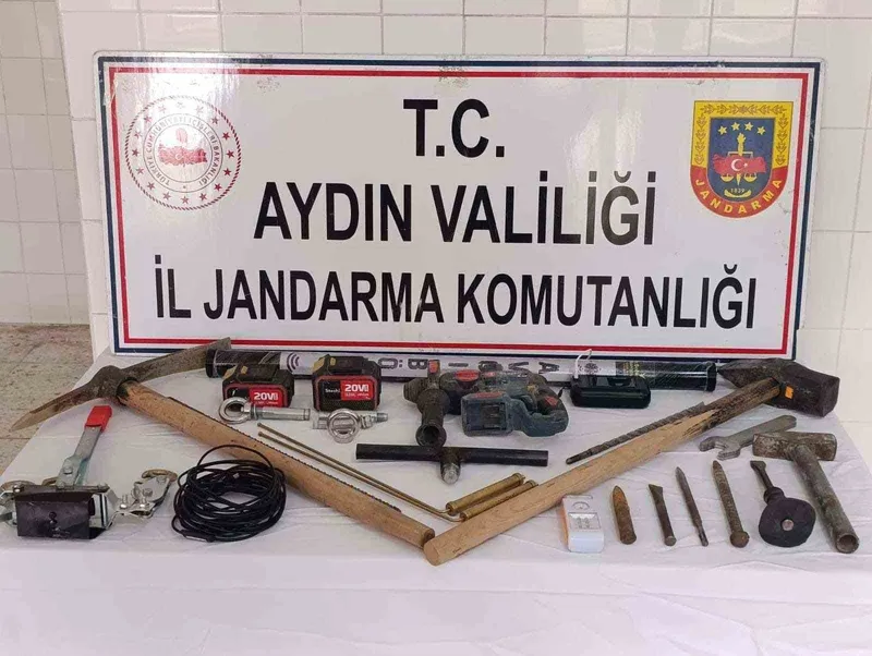 Edinilen bilgiye göre, Aydın İl Jandarma Komutanlığı Çine İlçe Jandarma Komutanlığı ekipleri tarafından 9 Şubat 2026 günü Çine ilçesi Sarıköy Mahallesi Gökbel Mevkii’nde icra edilen devriye faaliyeti sırasında izinsiz kaçak kazı yapıldığı tespit edilen A.A. (40), A.B. (34) ve A.Ç. (45) isimli 3 şüpheli kazı yaptıkları sırada suçüstü yakalandı. Şüphelilerin kaçak kazıda kullandıkları metal dedektörü, yılan kamera, alan tarama cihazları, matkap ve bataryaları ile çeşitli kazı aletleri ve aparatlar ele geçirildi. Olayla ilgili olarak Cumhuriyet Savcısının talimatları doğrultusunda adli tahkikat başlatılırken, şüpheli şahıslar ifadelerinin alınmasının ardından serbest bırakıldı.