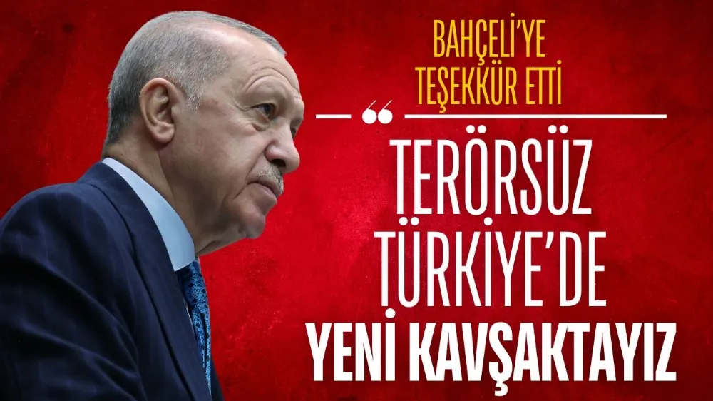 Terörsüz Türkiye sürecine vurgu yapan Erdoğan, "Terörsüz Türkiye ve terörsüz bölge hedefine giden yolda yeni bir kavşağa ulaştığımız görülüyor." dedi.