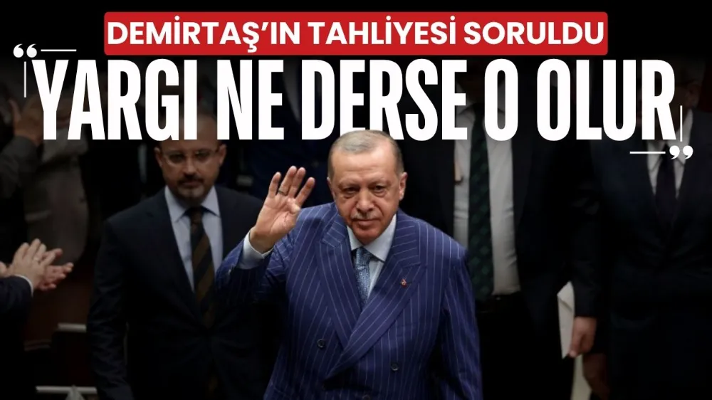 Erdoğan, Milliyetçi Hareket Partisi Genel Başkanı Devlet Bahçeli tarafından yapılan “Demirtaş’ın tahliyesinin Türkiye için hayırlı olacağı” yönündeki açıklamaya işaret ederek, “Bu ülke yargı ülkesidir. Yargı bu konuda ne derse ona uyarız” ifadesini kullandı.