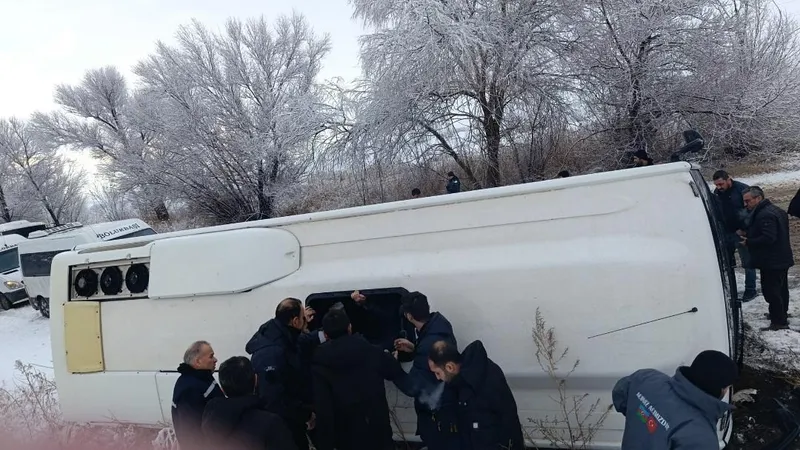 Kahramanmaraş’ta Elbistan-Çoğulhan karayolunda işçi taşıyan servis aracı, kaygan zemin nedeniyle kontrolden çıkarak devrildi. Kazada şans eseri yaralanan olmazken, araçta maddi hasar meydana geldi.
