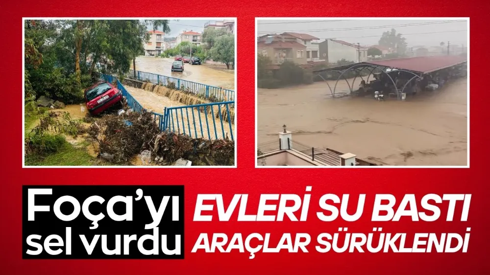 İzmir’in Foça ilçesinde etkili olan sağanak yağış hayatı olumsuz etkiledi. Araçlar sel sularında sürülendi, birçok ev ve iş yerini su bastı.