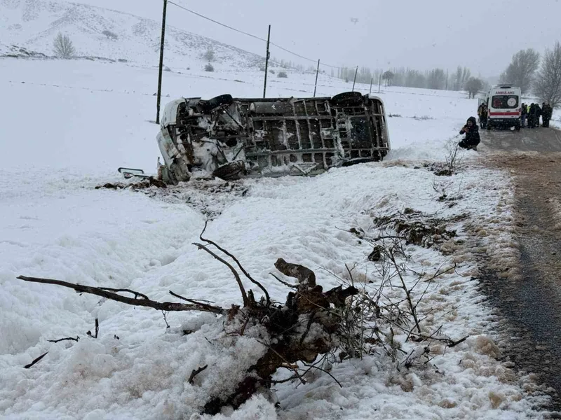 Sivas’ta öğrenci servisi kar ve yoldaki buzlanma nedeniyle şarampole devrildi. Kazada sürücü ve 13 öğrenci yaralandı.