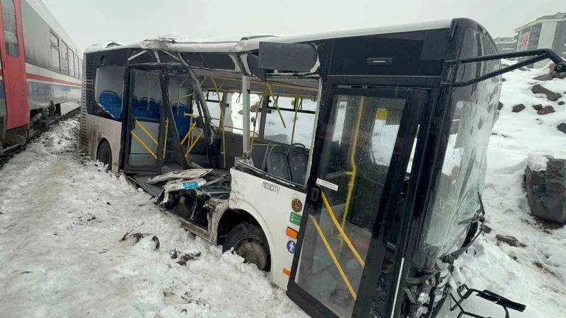 Hemzemin geçitte trenle çarpışan belediye otobüsünün sürücüsü yaralandı