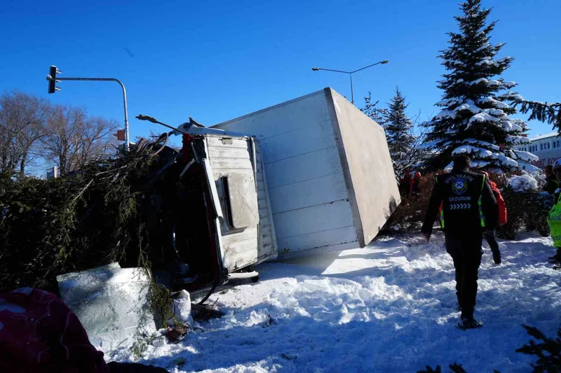 Erzurum’un Yakutiye ilçesi Fatih Sultan Mehmet Bulvarı’nda, Üniversite Kavşağı yönüne giden bir kamyon sürücüsü, henüz bilinmeyen bir sebeple hızını alamayarak kaldırımı aşıp refüje çıktı. Refüjü aşan kamyonet ön kısmından ağaca çarparak devrildi. Çarpma sonucu ağaç da kökünden söküldü. 38 AHM 800 plakalı yüksüz araçta, şoförle birlikte 3 kişi daha çıktı. Yaralılardan birisi ambulansla Erzurum Şehir Hastanesi’ne kaldırıldı. Olay yerine çok sayıda sağlık ekibi, itfaiye, AFAD ve polis ekibi yönlendirildi. Ekipler devrilen kamyonun altında kimsenin kalıp kalmadığını kontrol etti.
