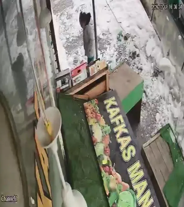 Olay Ahmet Aslan Caddesi’nde meydana geldi. Kaldırımda yürüyen bir vatandaş, binadan kopan buz ve kar kütlesi üzerine düşmesinden son anda kurtuldu. O anlar cadde üzerinde bulunan işyerinin güvenlik kamerasına yansıdı.