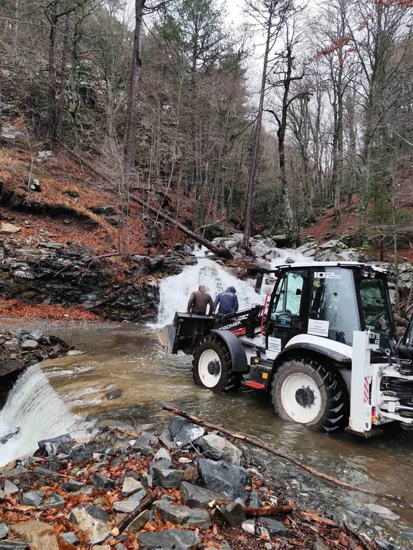 Edremit Belediyesi’ne ait iş makinesinin de desteğiyle sel sularının bozduğu yolda zemin düzeltme çalışması yapıldı. Ekiplerin yaklaşık 12 saat süren uğraşları sonucu mahsur kaldıkları yerden kurtarılan 2 kişinin sağlık durumlarının iyi olduğu öğrenildi.