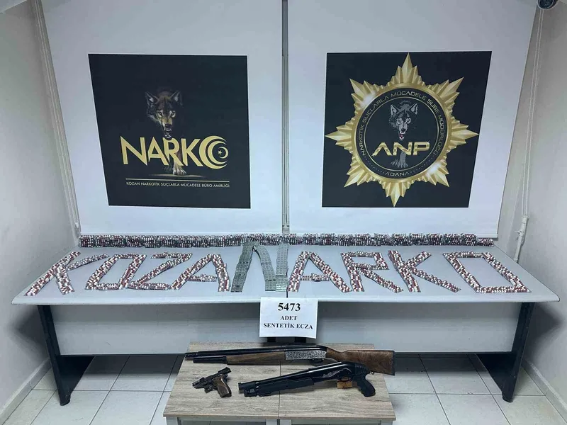 Kozan İlçe Emniyet Müdürlüğü ekipleri tarafından ilçede uyuşturucu kullanımını ve ticaretini engellemeye yönelik yürütülen çalışmalar çerçevesinde A.E.E.’nin uyuşturucu sattığı tespit edildi. Polis şüpheliyi teknik ve fiziki olarak takip etmeye başladı. Yapılan takip sonucu 10 Ocak günü şahıs Tufanpaşa Mahallesi Canoğlu Sokak’ta uyuşturucu satarken suçüstü yakalandı. Şüphelinin üstünde ve ikametinde yapılan aramalarda 5 bin 473 uyuşturucu hap, 1 pompalı av tüfeği, 1 ruhsatsız av tüfeği ve 1 kurusıkı tabanca ele geçirildi.