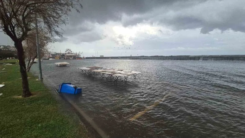 Marmara Denizi’nde etkili olan şiddetli lodos nedeniyle Tekirdağ sahil şeridi sular altında kalırken, denizdeki olumsuz hava şartları günlük yaşamı olumsuz etkiledi.