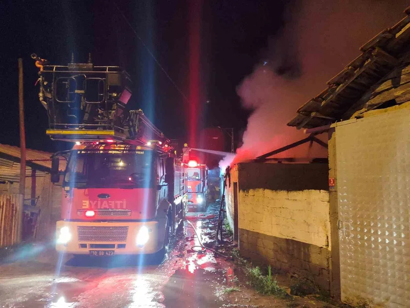 Balıkesir’in Manyas ilçesinde bir samanlıkta çıkan yangın, ekiplerin birlikte müdahalesiyle kontrol altına alınarak söndürüldü. Yangında çok sayıda yonca balyası ile kömür zarar gördü.