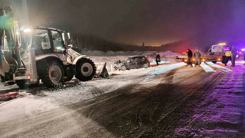 Karlı yolda kayan otomobil karşı şeritten gelen araçla çarpıştı: 6 yaralı