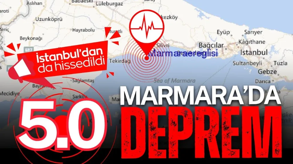 AFAD, Tekirdağ açıklarında Marmara Denizi'nin 18 kilometre derininde saat 14.55'te 5.0 büyüklüğünde deprem meydana geldiğini açıkladı.