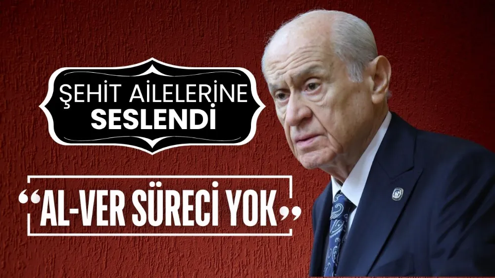Terörsüz Türkiye sürecine yönelik konuşan Bahçeli, şehit ailelerine seslenerek herhangi bir al-ver sürecinde olmadıklarının altını çizdi. Bahçeli, “Onların başlarını öne eğdirmeyeceğiz. Pazarlık içinde değiliz. Al-ver sürecine tamamıyla kapalıyız. Türkiye’nin egemenlik hukukunu, Cumhuriyet’in kurucu ve kuruluş felsefesini zafiyete uğratacak hiçbir yanlışın içinde Cumhur İttifakı olarak yer almayız” dedi.