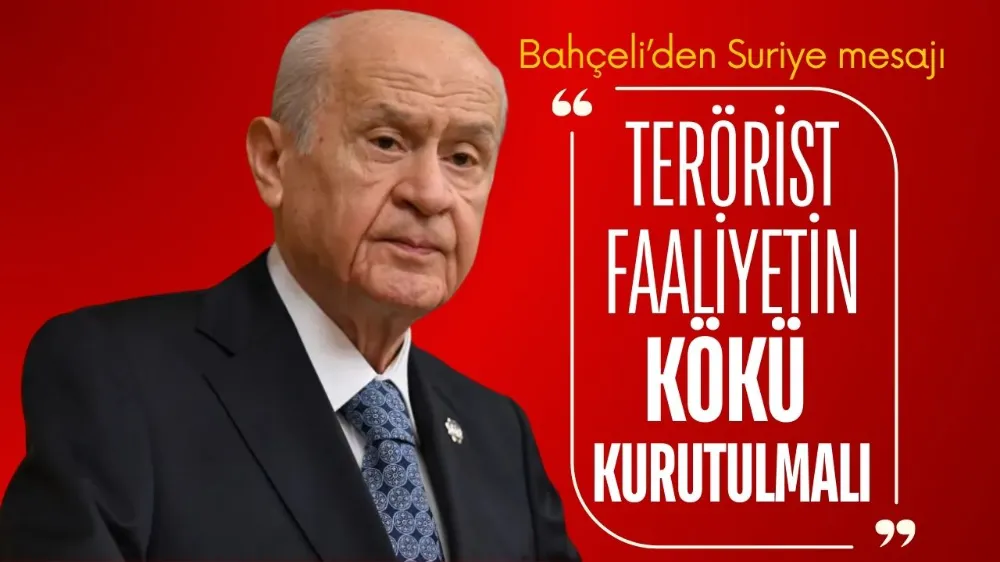 Suriye'de yaşanan son gelişmelere konuşmasında geniş bir yer ayıran Bahçeli, “Sadece Fırat’ın batısı değil doğusu da, Ayn el Arab’tan Kamışlı’ya kadar bulunan terörist faaliyetlerin kökü kurutulmalıdır.” dedi.