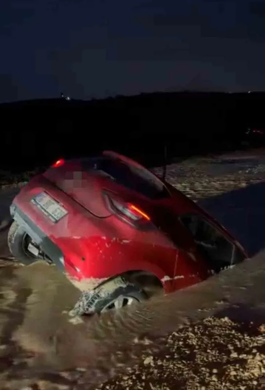 Otomobil bataklığa saplandı, sürücü son anda kurtuldu