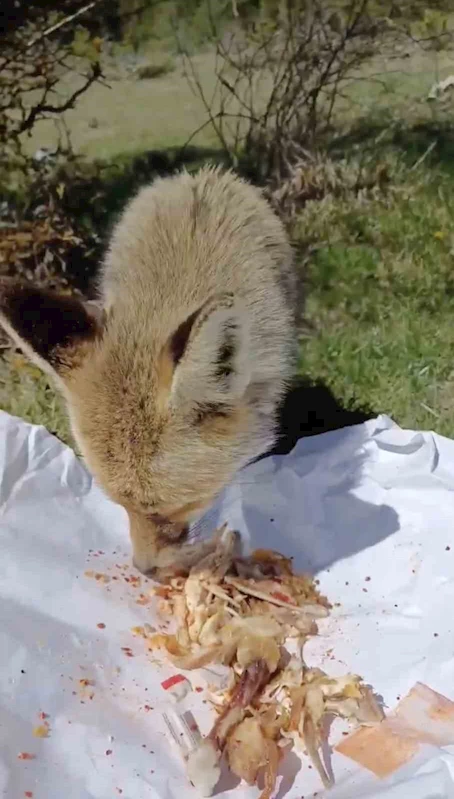 Kastamonu’nun İhsangazi ilçesinde piknik yapmak için ormanlık alana giden vatandaşlar, beklenmedik bir misafirle karşılaştı. Vatandaşlar piknik yaparken yanlarına bir tilkinin yaklaştığını fark etti. Vatandaşlar yanlarına gelen tilkiyi, tavuk etiyle besledi. Verilen tavuk etinden yiyen tilki bir süre sonra uzaklaştı.