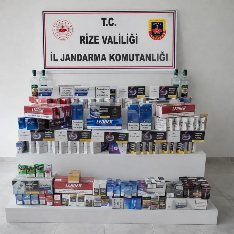 Rize İl Jandarma Komutanlığı tarafından kaçakçılıkla mücadele kapsamında yürütülen çalışmalar neticesinde Pazar ilçesinde operasyon gerçekleştirildi. İki şahsın ikameti ve iş yerinde yapılan aramalarda bin 145 paket kaçak sigara, 5 adet elektronik sigara, 7 paket ısıtılmış sigara tütünü ve 4 litre bandrolsüz kaçak alkol ele geçirildi.