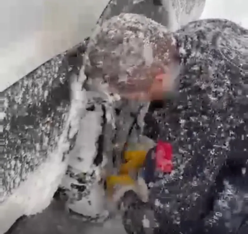 Bir süre sonra kara saplanarak yolda kalan ambulanstaki sağlık personeli, dondurucu soğuğa ve yoğun yağışa rağmen araçtan inerek çalışma başlattı. Lastiklere zincir takarak aracı saplandığı yerden kurtaran ekipler, zorlu mücadelenin ardından yola devam ederek hastaya ulaştı.