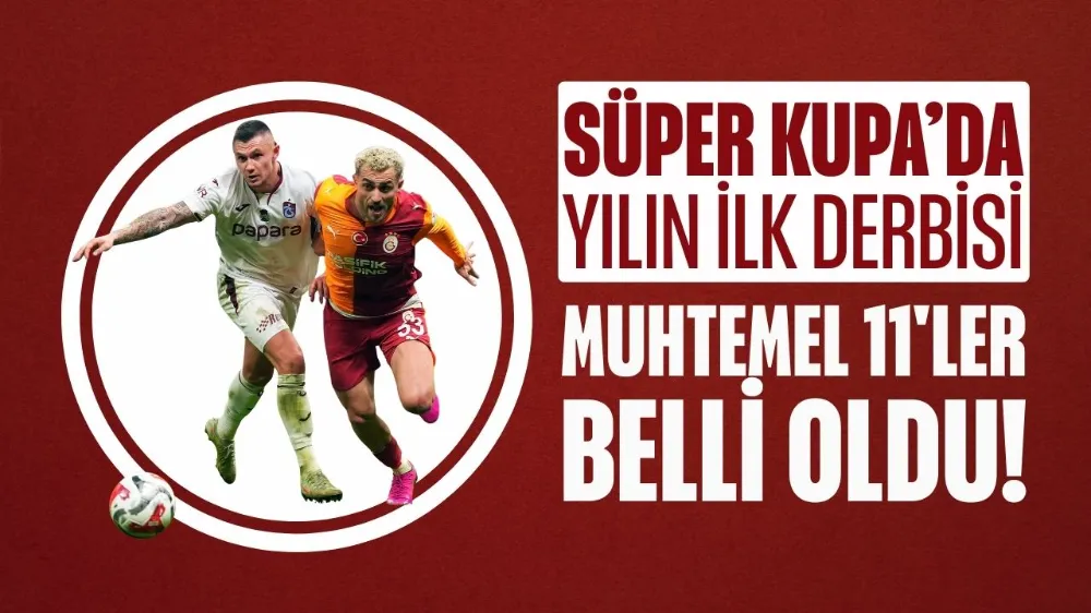 Turkcell Süper Kupa yarı finalinde Galatasaray Trabzonspor maçı, bu akşam saat 20.30’da Gaziantep Stadyumu’nda oynanacak. İki takım, Süper Kupa organizasyonunda ilk kez birbirine rakip olacak. Mücadeleyi kazanan taraf, 10 Ocak’ta Atatürk Olimpiyat Stadyumu’nda oynanacak finalde Fenerbahçe–Samsunspor eşleşmesinin galibiyle kupaya uzanma mücadelesi verecek.