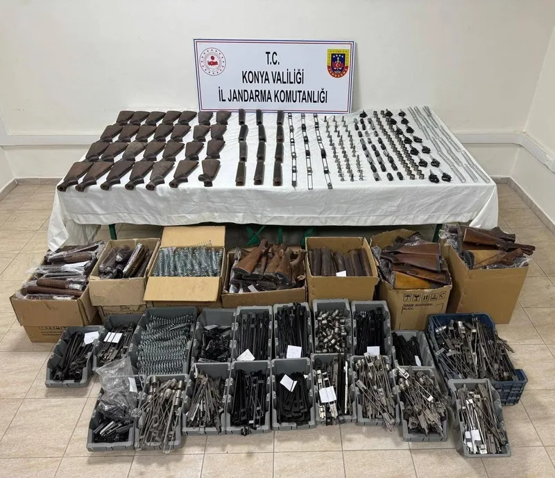 Edinilen bilgiye göre, Konya İl Jandarma Komutanlığı ekiplerince; suç ve suçluluk faaliyetlerinin önlenmesine yönelik çalışmalar devam ediyor. Kaçakçılık ve Organize Suçlarla Mücadele Şube Müdürlüğü, Jandarma Dedektileri (JASAT) ve Beyşehir İlçe Jandarma Komutanlığı ekiplerince yapılan istihbari çalışmalar neticesinde, bir şahsın ikamet ve av bayi olarak faaliyet gösteren iş yeri adresine adına göndermiş olduğu kargo ve şahsın araçlarında yapılan aramada 100 adet tabanca icra yayı, 2 bin 642 adet muhtelif tabanca parçası, 80 adet av tüfeği tetik tertibatı, 136 adet av tüfeği mekanizması, 545 adet av tüfeği icra yayı ve bin 987 adet muhtelif av tüfeği parçası ele geçirildi.