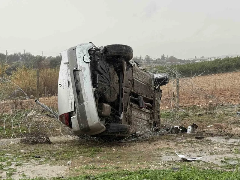 Mersin’in Tarsus ilçesinde yamur kazaya neden oldu, yoldan çıkan arac şarampole devrildi.