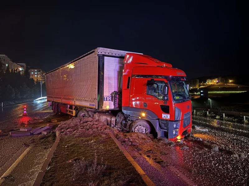 Manisa’nın Kula ilçesinde yağışlı havanın da etkisiyle kayganlaşan yolda sürücüsünün direksiyon hakimiyetini kaybettiği tır, refüje çıktı. Yola fırlayan taşlar sonucu 2 otomobil zarar görürken, kazada yaralanan olmadı.