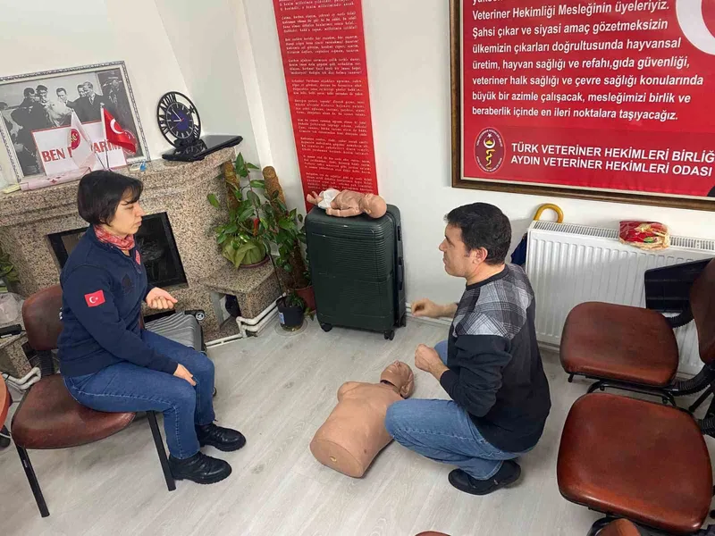 Aydın’da veteriner hekimlere yönelik düzenlenen ilk yardım güncelleme eğitiminde, sertifikalı veteriner hekimler acil sağlık uygulamalarına ilişkin bilgilerini tazeledi.