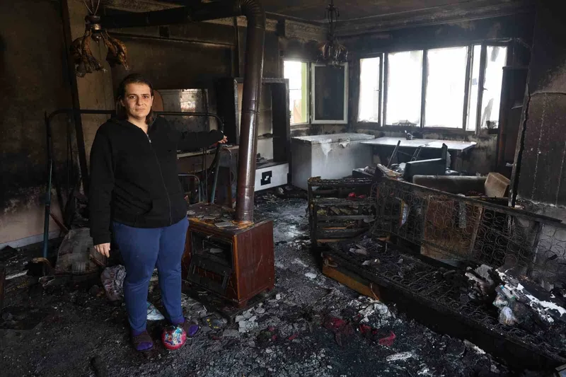 Asrın felaketinde yıkılmayan evinde yangınla birlikte 4 çocuğuyla felaketi yaşayan anne Melek Uzun, "Ben 2009 yılında beri bu eve gelin geldim. Deprem felaketini de ben ve çocuklarımla birlikte geçirdim. Yangını da bu evde geçirdim. Allah’tan çocuklarım yangın esnasında içeride değildi. Yangın çıkmadan 5 dakika önce ben buradan küçük oğluma kıyafet aldım. Oğlumun üzerini giydirdim, diğer oğlumda lavabodaydı. Oğlum ‘anne yangın çıktı’ dedi. Yukarıya çıktığım zaman direkt banyoya yöneldim. Kovayla su doldurup yangını söndürebileceğimi sandım ama o esnada da kapı bir şekilde üstüme kapandı. Bu sefer kapıya da çıkamaz oldum. Pencereye çıkıp çocuk odasından yardım istedim. İtfaiye ekipleri geldi ve beni ve oğlumu dışarı çıkardılar, hastaneye götürdüler. Ben ve oğlum burada dumana maruz kaldım, ikimizi de hastaneye aldılar. Benim eşim cezaevine girdikten sonra depremi gördüm ve bu evde hiçbir şeyim kalmamıştı. Her şeyi tek başıma biriktirip aldım. Çocuklarımla birlikte yaptık ama şu an yangınla beraber tekrar gitti. Deprem olduğu zaman biz bu evdeydik, ben çocuklarımı bu evden çıkardım. Hatta benim sobam kapının önüne geldi ve benim sobam çok ağırdı. Ben ona rağmen o sobayı tek başıma çıkarttım. O zaman üç çocuğum vardı ve tek başıma çıkarttım. Ondan sonra yangın felaketini de bu evde gördüm, koltuklarım yandı. Çocuklarımın bir sürü kıyafeti vardı. Televizyonum, buzdolabım ve fırınım vardı. Bazı eşyaları daha kullanmamıştım, yeni almıştım. Bana yardımcı olabilirseler çok sevinirim. Hiçbir şeyim kalmadı evimi görüyorsunuz. Eşyalar da kıyafetler de yandı" ifadelerini kullandı.